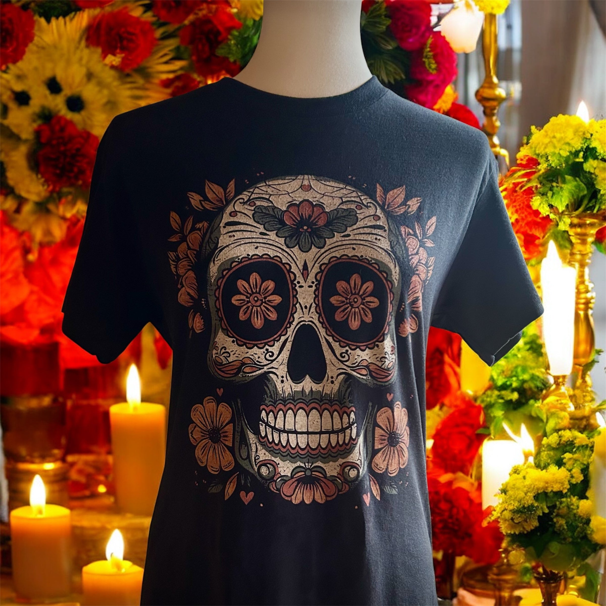 Day of the Dead Skull Design Graphic T-Shirt